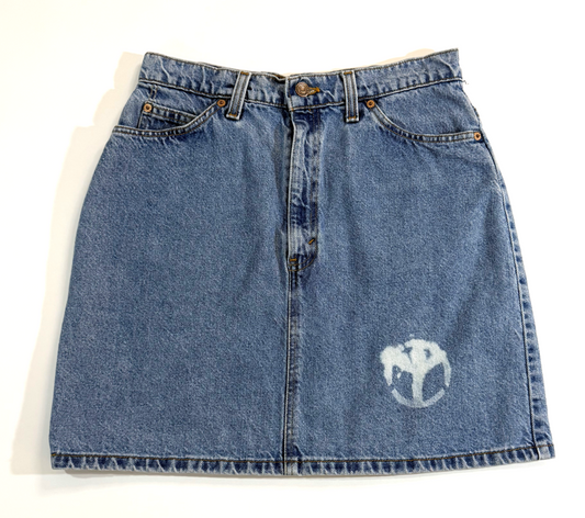 Vintage 1990s Orange Tab Levi 951 Relaxed Fit Denim Mini Skirt with Bleached Hearts & Peace Sign Detail - Medium