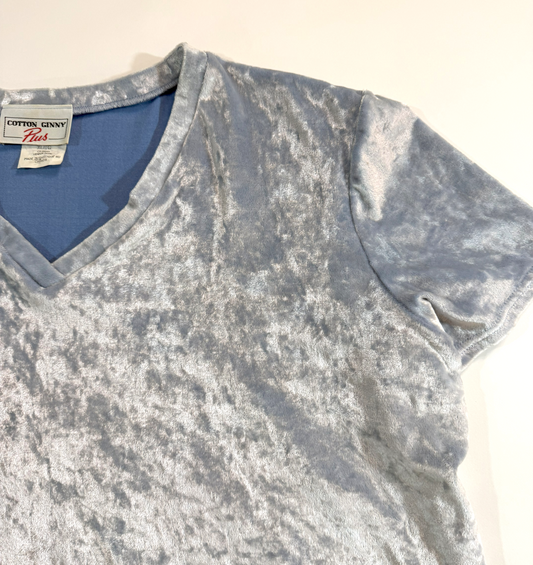 Vintage 1990s Icy Light Blue Cropped Velvet Feel Top by Cotton - XL