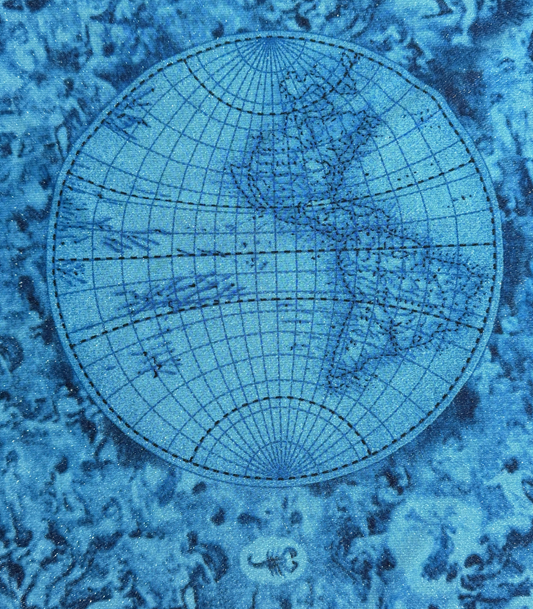Vintage 1990s Metallic Glitter Blue Globe Short Sleeve Baby Tee by Nicola - Large