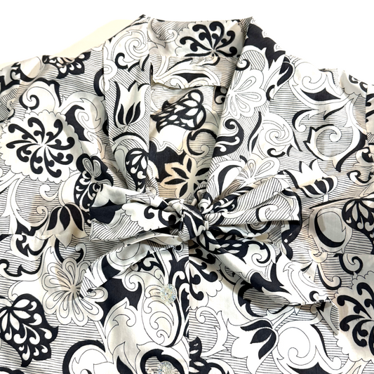 Vintage ~1960s Psychedelic Black and White Print Blouse - Large