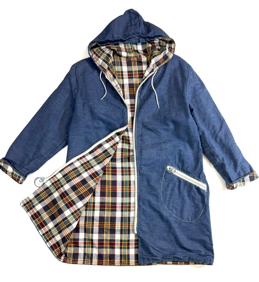 Vintage ~1970s Reversible Denim and Plaid Zip up Hooded Jacket - Large