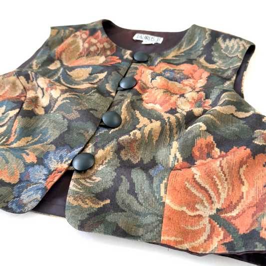 Vintage 1990s Floral Cropped Vest by Taurus II - Medium