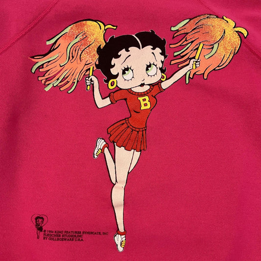 Vintage 1990s Hot Pink Betty Boop Cheerleader Crewneck Sweatshirt - Large