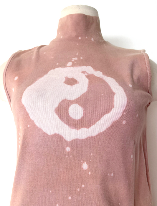 Vintage 1990s/Y2K Bleached Tan Yin Yang Sleeveless Dress by The Limited - XS