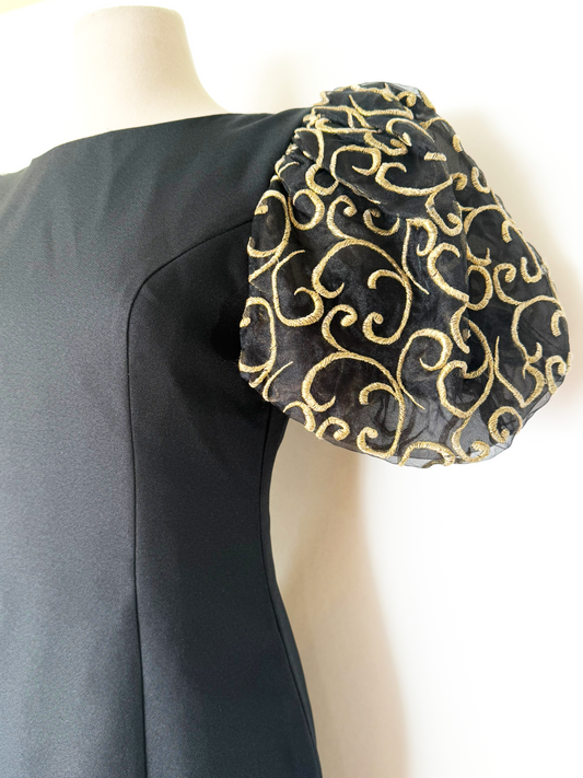 Vintage 1990s/Y2K Black and Gold Elaborate Puff Sleeve Dress by Jessica Howard - Small
