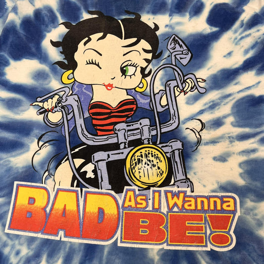 Vintage Y2K Blue Tie-Dye Betty Boop Motorcycle "Bad As I Wanna Be" Tee - XL
