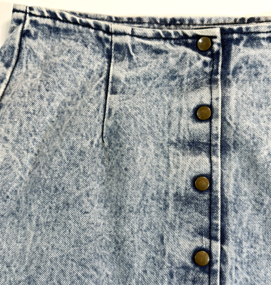 Vintage ~1990s Light Blue Acid Wash Denim Snap Button Down Skirt - Small