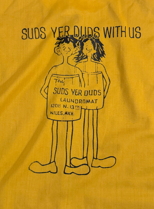 Vintage ~1970s Yellow Suds Yer Duds Laundromat Smock Vest - Small
