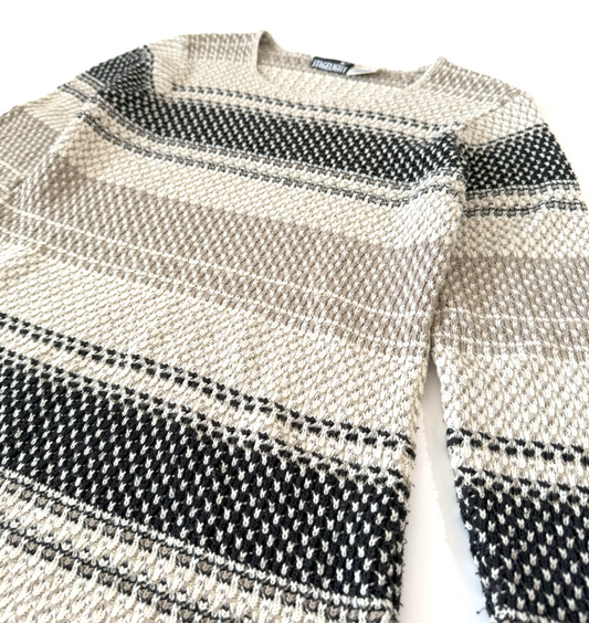 Vintage ~1990s Black, Cream, and Tan Neutral Striped Sweater by Stagelight - Small