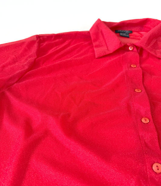 Vintage ~1990s/Y2K Sheer Metallic Red Short Sleeve Button Down Top by Jazzie Women - 3X